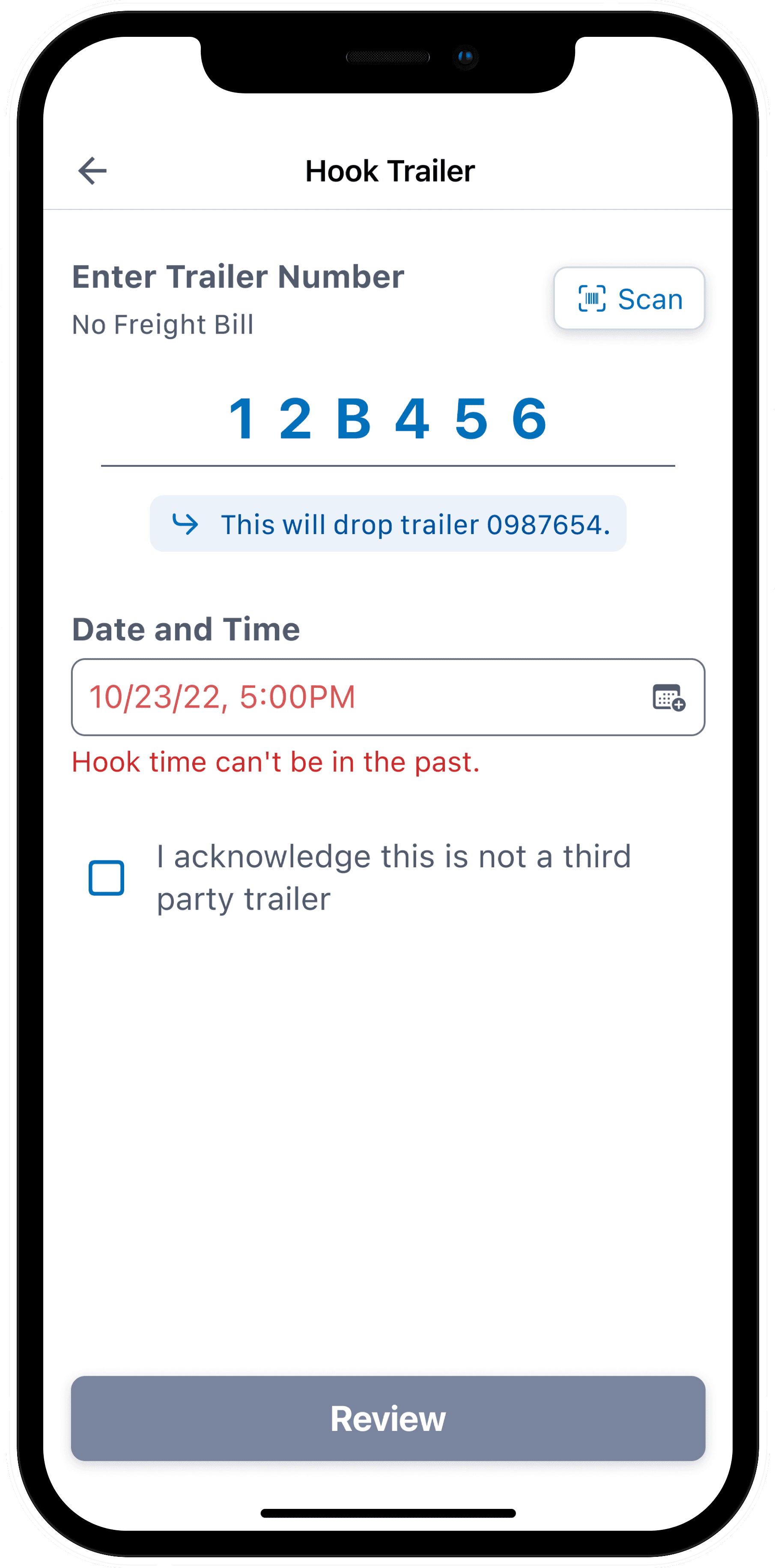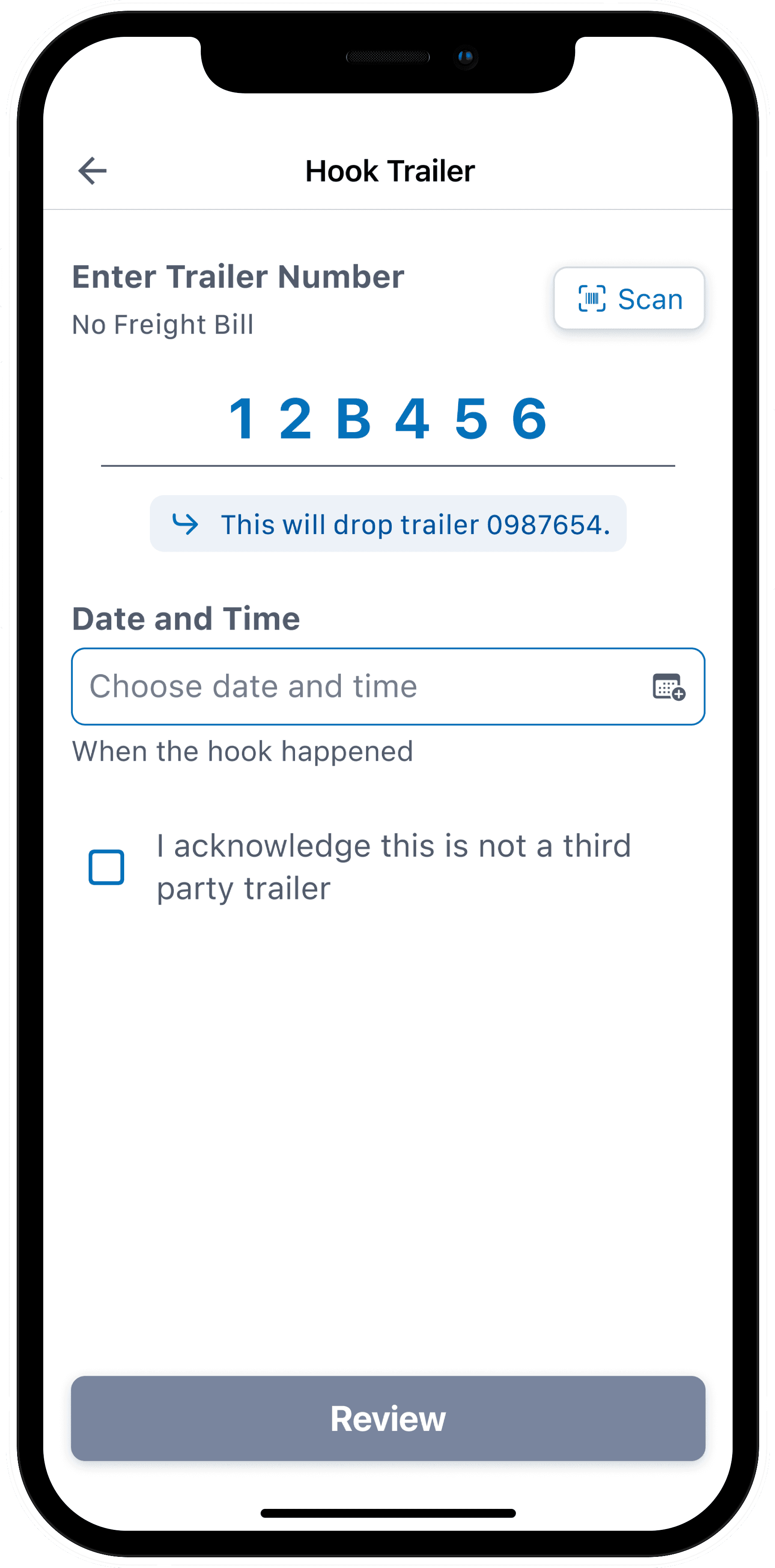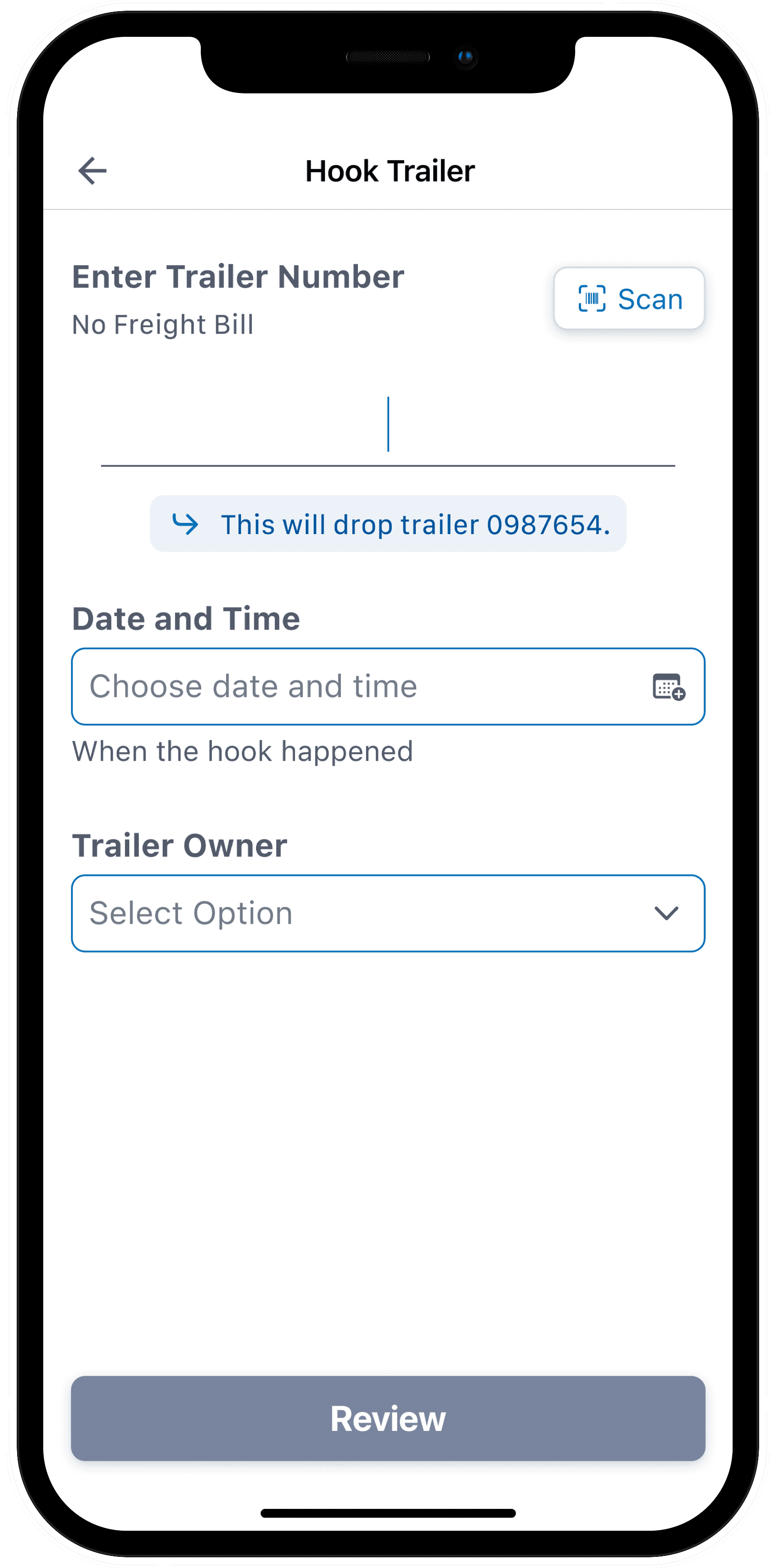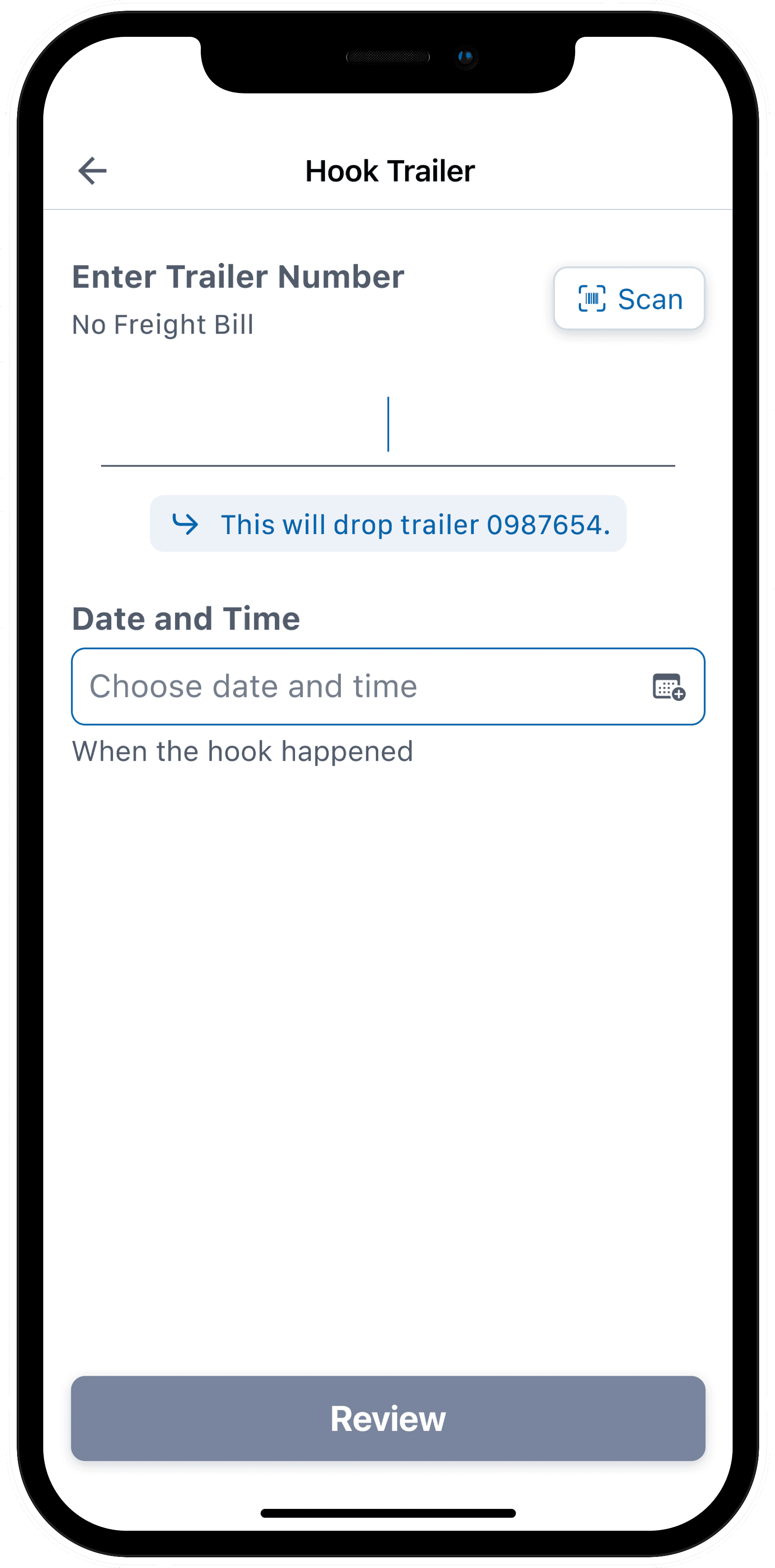 To ensure accurate logging, we added a field for drivers to enter when a hook or unhook occurred. While most use the feature immediately after the action, it was important to provide flexibility—letting drivers log it on their terms, not the app’s.