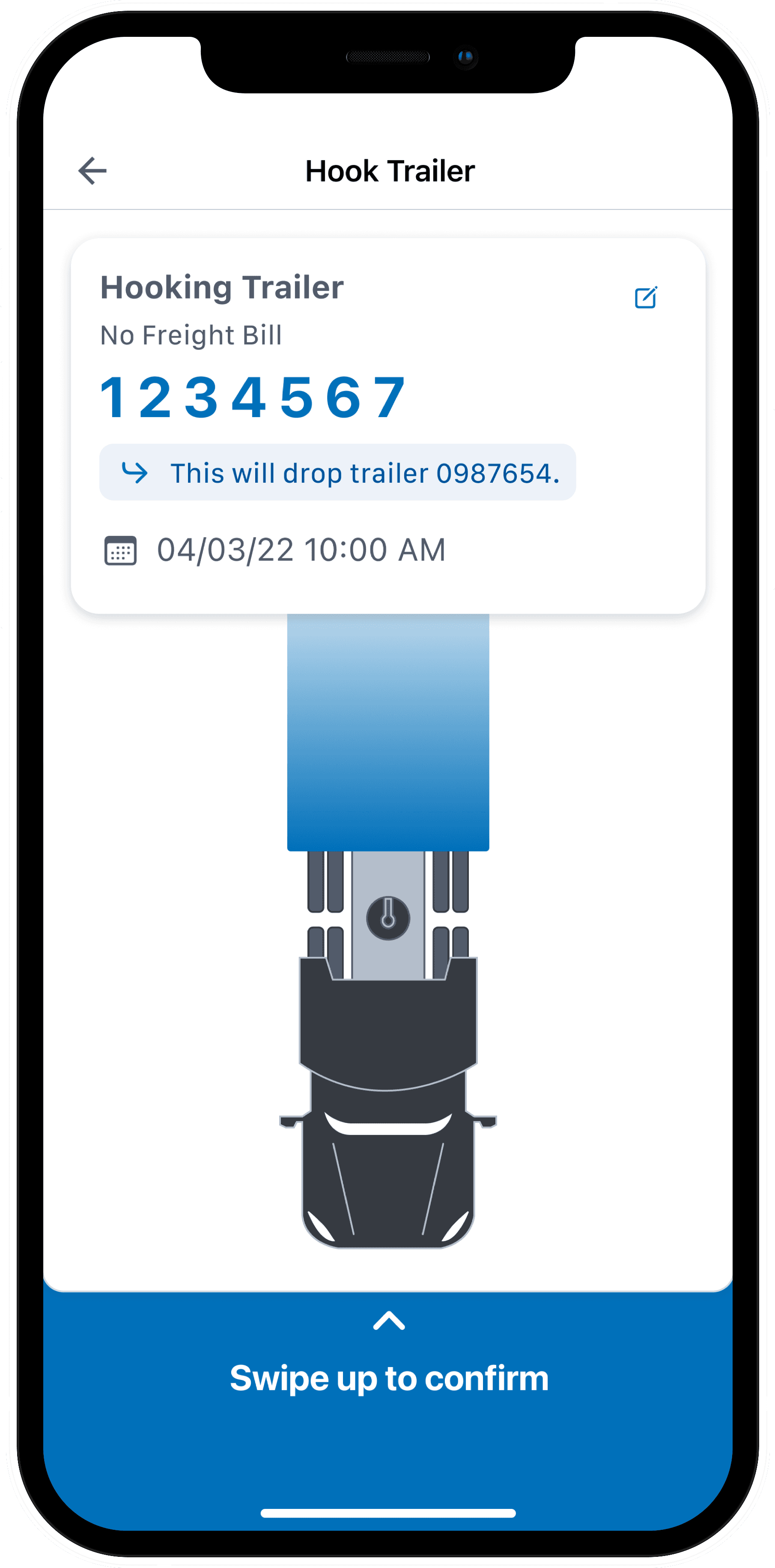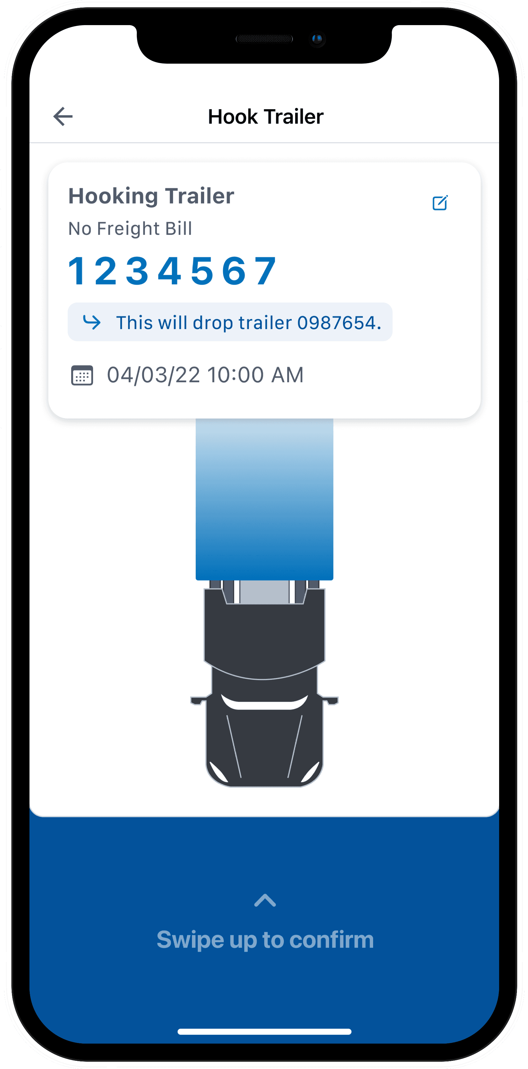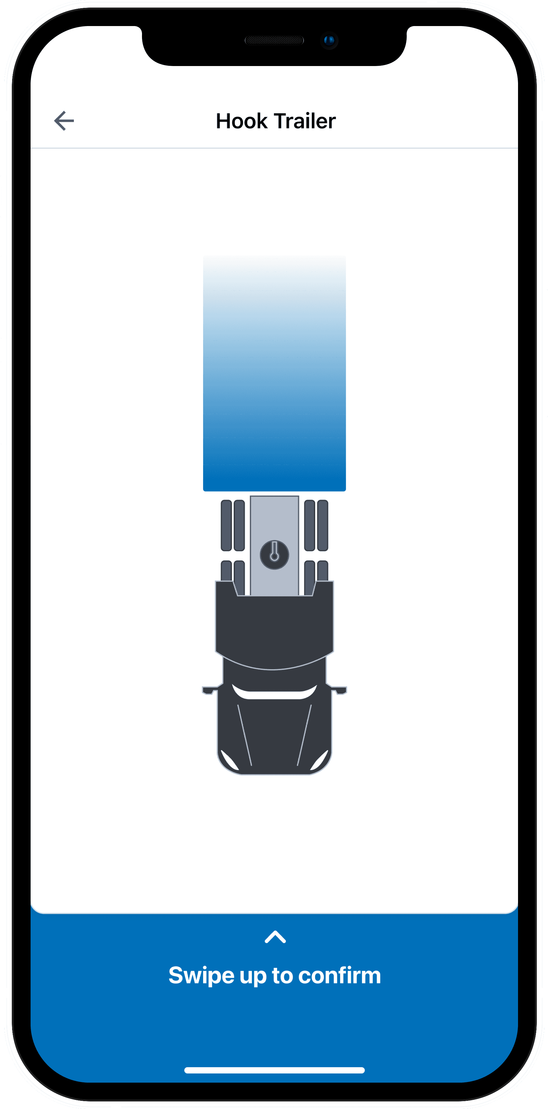 The card interaction was crafted to balance intentional friction with satisfying momentum. Initially, BCOs can review trailer details. As they swipe up, the card follows with slight resistance. At the midpoint—where the tractor and trailer visually connect—a pause and haptic tap signal confirmation. From there, the card animates upward automatically, transitioning to a success screen that reinforces task completion.
