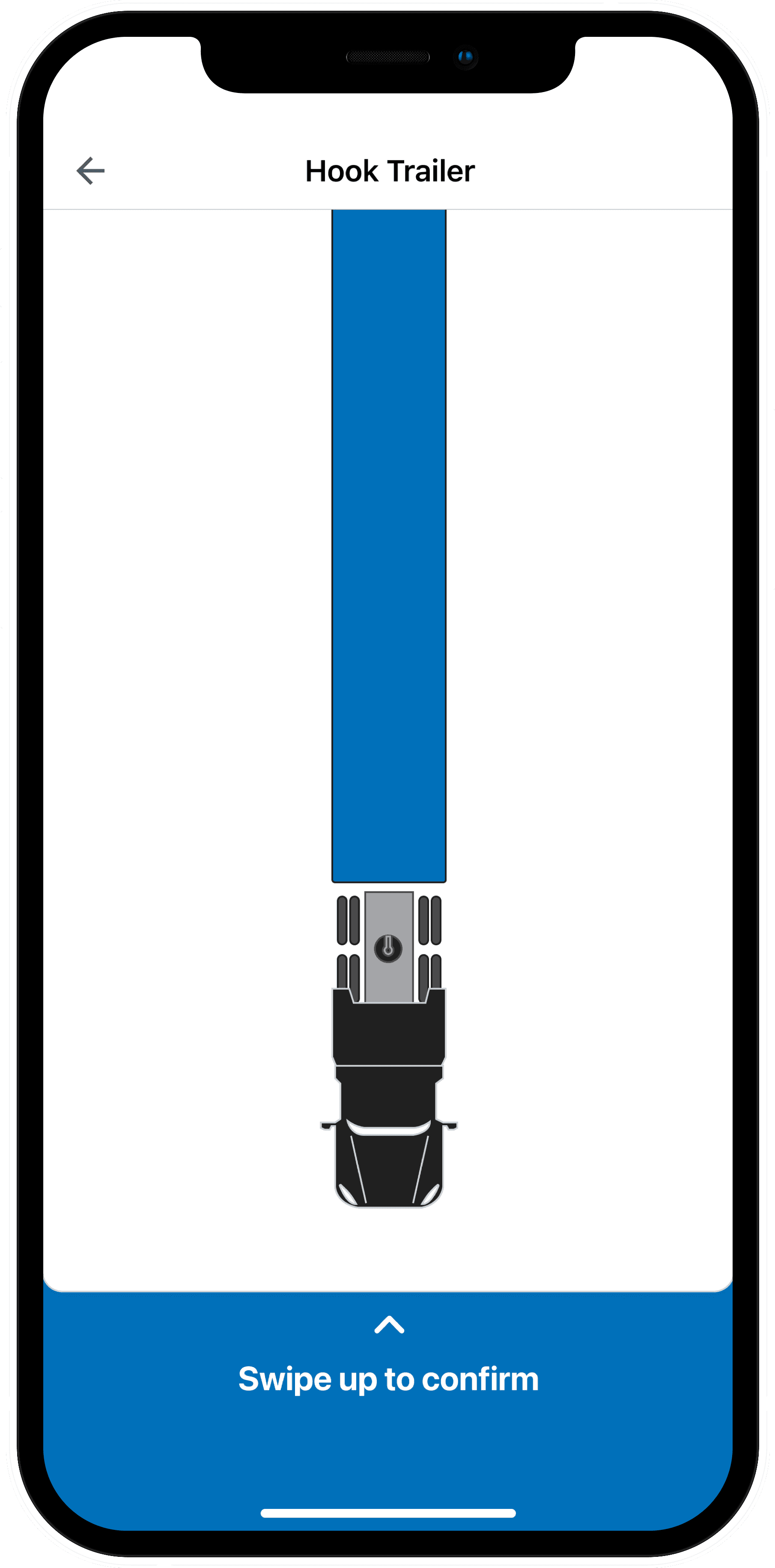 The visual of the tractor connecting to the trailer helped users understand what the hook action represented in real life. Initially, the trailer was shown to scale, which made it difficult to fit on screen. By trimming the trailer, we preserved clarity while improving usability.